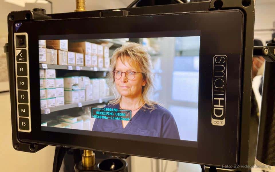 Zum fünften Mal setzt die Mitarbeiterin aus dem MEDI-MVZ in Aalen den Barcode-Scanner im Lager an das Desinfektionsmittel an. Jetzt passt das Bild perfekt. Klappe fünf für den neuen MEDI-Film. Aus dem MEDI-MVZ wird für einen halben Tag ein Filmset. Eine professionelle Crew läuft durch die Praxisräume, um das Team gekonnt in Szene zu setzen.