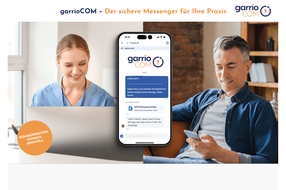 Gutekunst: Häufig möchten Patientinnen und Patienten ihre Laborwerte zugeschickt bekommen. Die Praxen geben die Werte aktuell oft am Telefon, per Brief oder per E-Mail raus – Letzteres ist natürlich nicht besonders sicher. Beim Telefonieren ist die Herausforderung, die Patientin oder den Patienten überhaupt zu erreichen. Mit garrioCOM können die Praxen ganz einfach die Laborwerte als Text oder PDF an die Patientinnen und Patienten schicken. Das ist deutlich einfacher und sicherer. Aber es gibt noch eine ganze Reihe weiterer Funktionen, die wir auch stetig ausbauen.